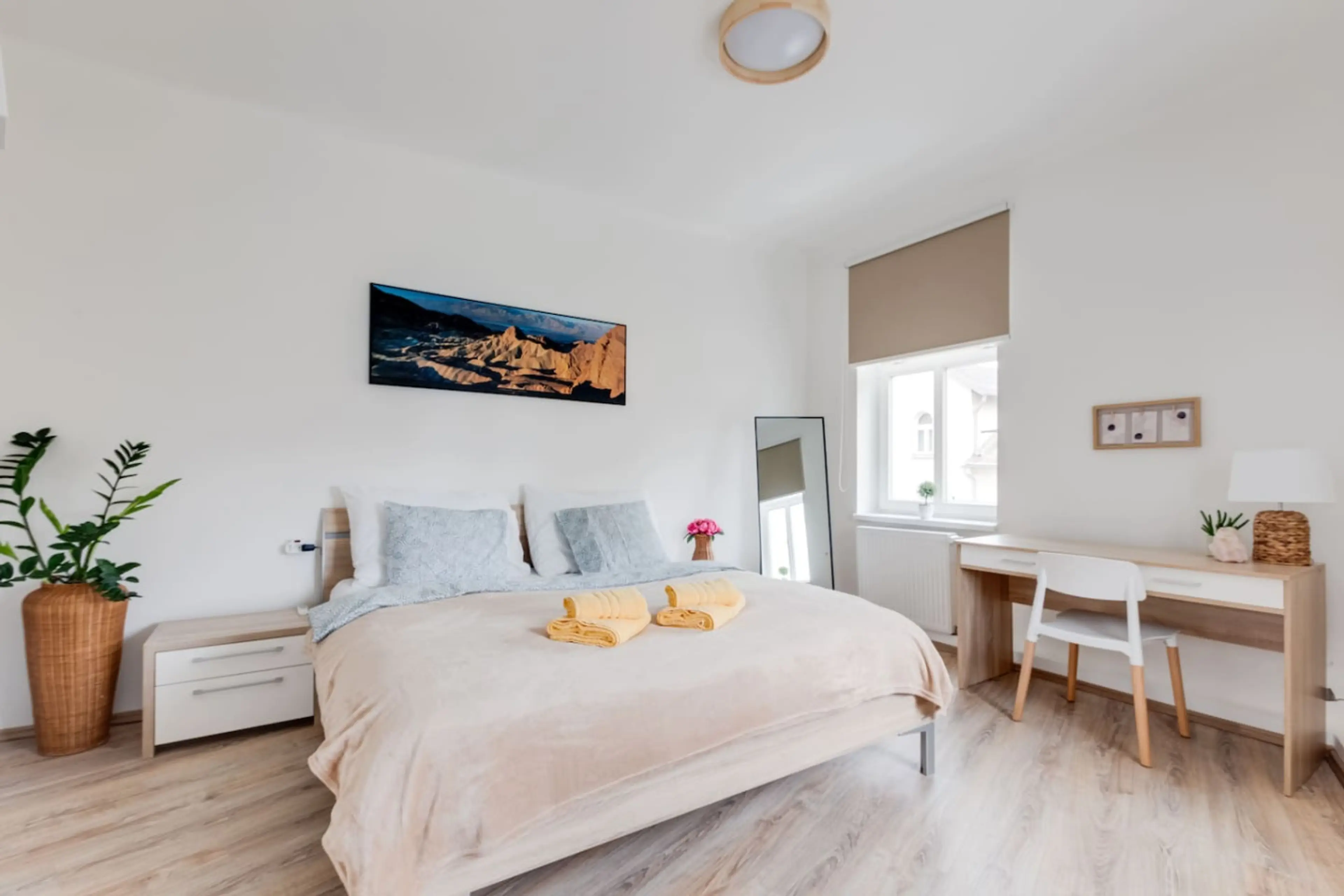 Located in peaceful neighborhoods with great public transport connections, you can reach the historic center of Prague within 20-30 minutes while enjoying the benefit of quiet nights, free street parking, and nearby shops and restaurants.